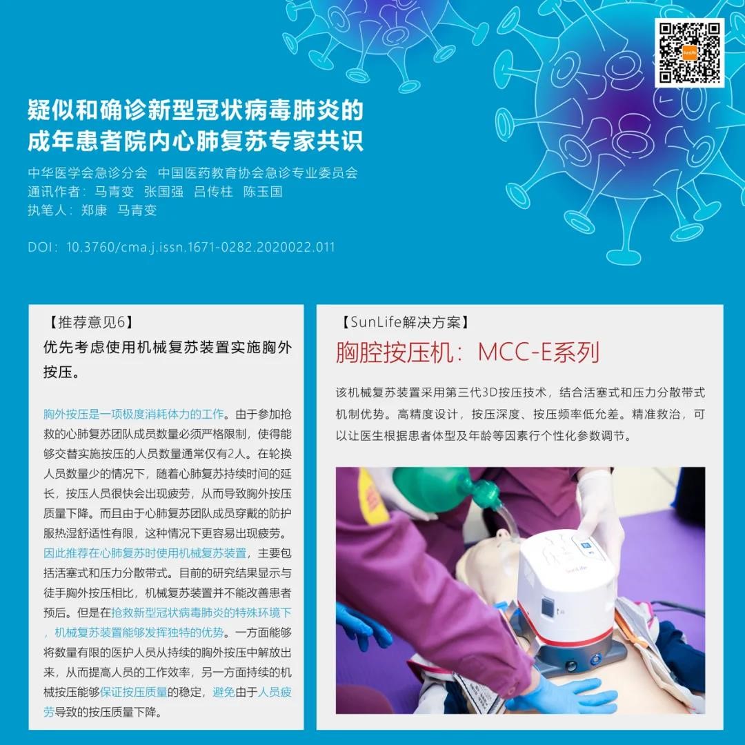 SunLife医疗的MCC-E胸腔按压机(电动心肺复苏机),被列入医疗器械类园区首批抗击疫情创新产品。